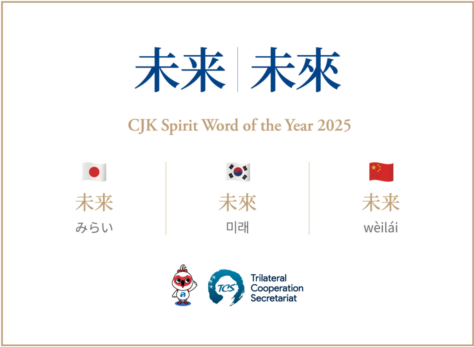 中新社首尔1月1日电 (记者 刘旭)1月1日,中日韩合作秘书处(以下简称“秘书处”)揭晓“未来”当选“中日韩精神——2025年度汉字”。该汉字词反映了三国共建美好未来的承诺,对于即将开启的2025-2026中日韩文化交流年具有特殊意义。