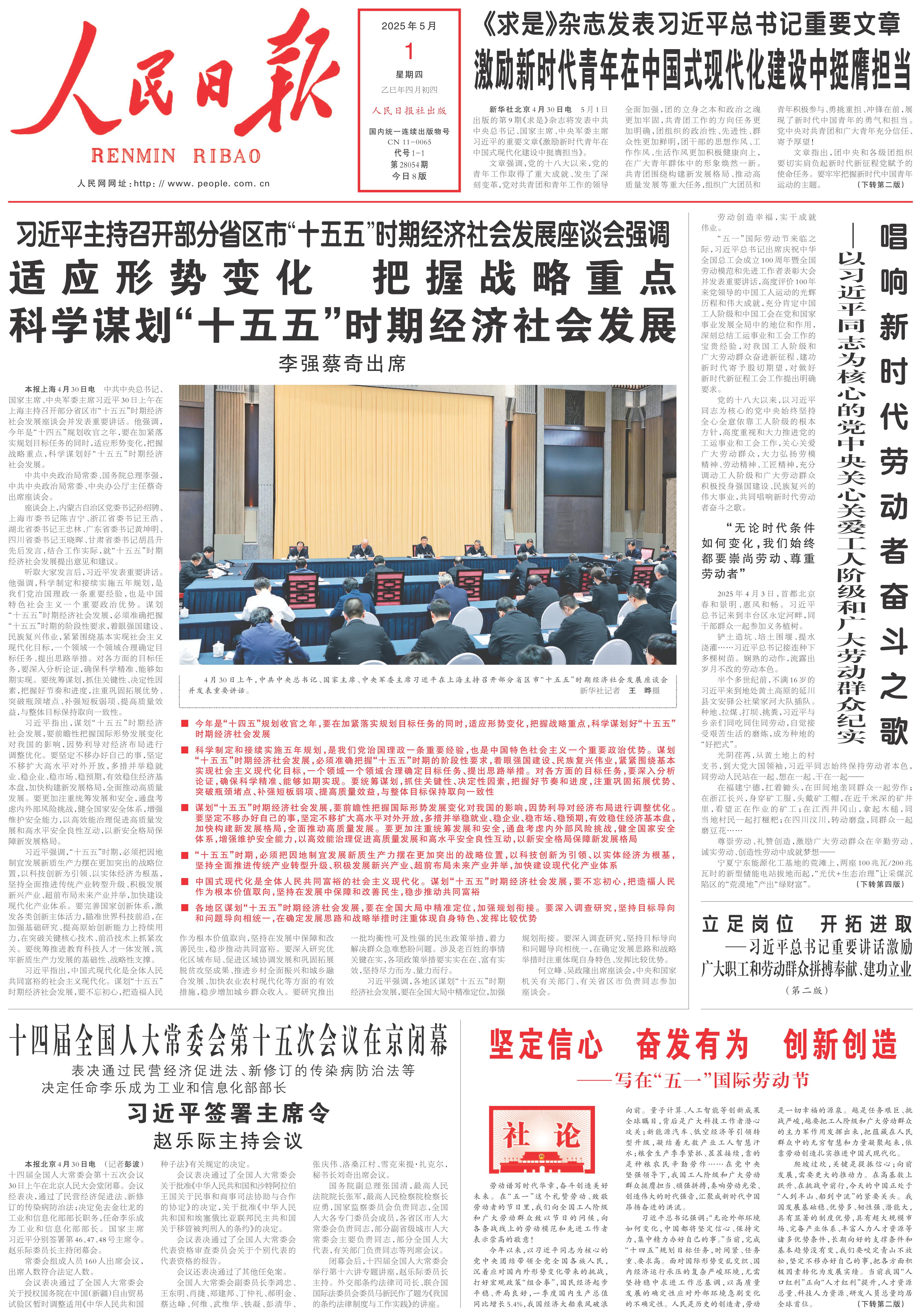 今年以来,以习近平同志为核心的党中央团结带领全党全国各族人民,沉着应对国内外形势变化带来的挑战,打好宏观政策“组合拳”,国民经济起步平稳、开局良好,一季度国内生产总值同比增长5.4%,我国经济大船乘风破浪向前。量子计算、人工智能等创新成果全球瞩目,背后是广大科技工作者潜心攻关;新能源汽车、低空经济等引领转型升级,凝结着无数产业工人智慧汗水;粮食生产季季紧抓、茬茬接续,靠的是种粮农民辛勤劳作……在党中央坚强领导下,我国工人阶级和广大劳动群众挺膺担当、顽强拼搏,奏响劳动光荣、创造伟大的时代强音,汇聚成新时代中国昂扬奋进的洪流。