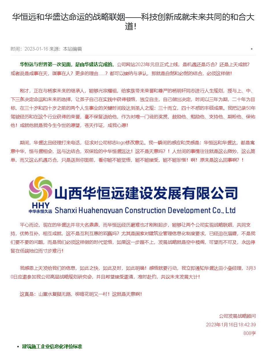 平心而论,现在的华盛达并非大名鼎鼎,而今年会经历磨难也才刚刚起步,能够让两个公司实现战略联姻,共同支持,优势互补,相互成就,这不是互利互惠的双赢吗?尤其是国家对建筑业管理信息化制度要求,已经迫在眉睫,不是我们要不要的问题,而是我们必须这样做的时代觉悟,如果这一步跟不上,发展战略就是空中楼阁,可望而不可及,永远停留在低端地位而寸步难行!808字