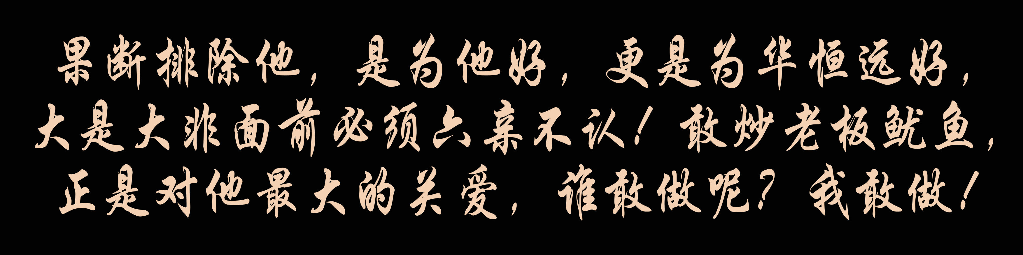 机遇的到来,就是一瞬之间,稍纵即逝,大事一定要当真,不可含含糊糊!千万不敢像我批评的那个人一样,糊里糊涂,自以为是,栽了多少跟头都不长一点记性!果断排除他,是为他好,更是为今年会好,大是大非面前必须六亲不认!敢炒老板鱿鱼,正是对他最大的关爱,谁敢做呢?我敢做!