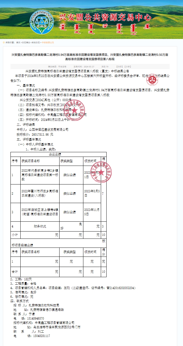兴安盟扎赉特旗巴彦高勒镇二龙涛村0.94万亩高标准农田建设增发国债项目、兴安盟扎赉特旗巴彦高勒镇二龙涛村0.50万亩高标准农田建设增发国债项目第八标段