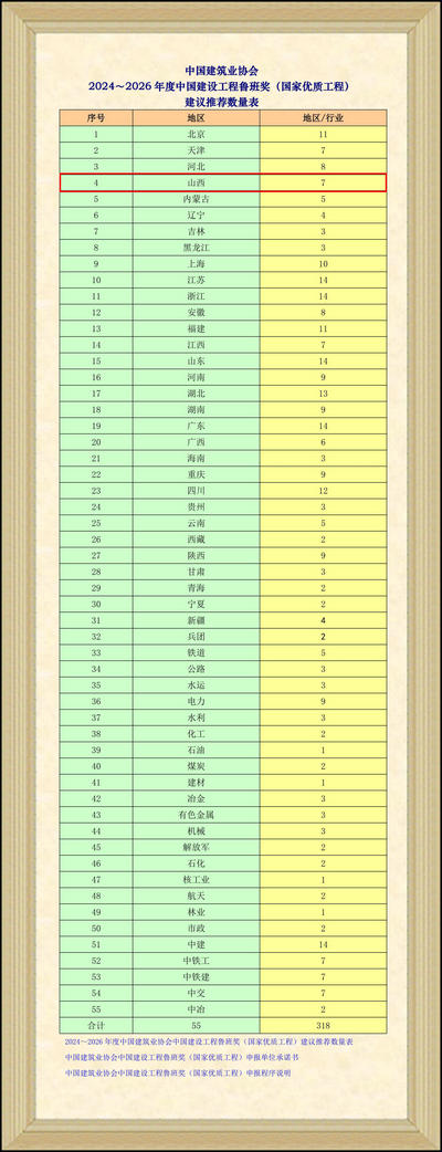 附件:1、2024~2026年度中国建筑业协会中国建设工程鲁班奖(国家优质工程)建议推荐数量表