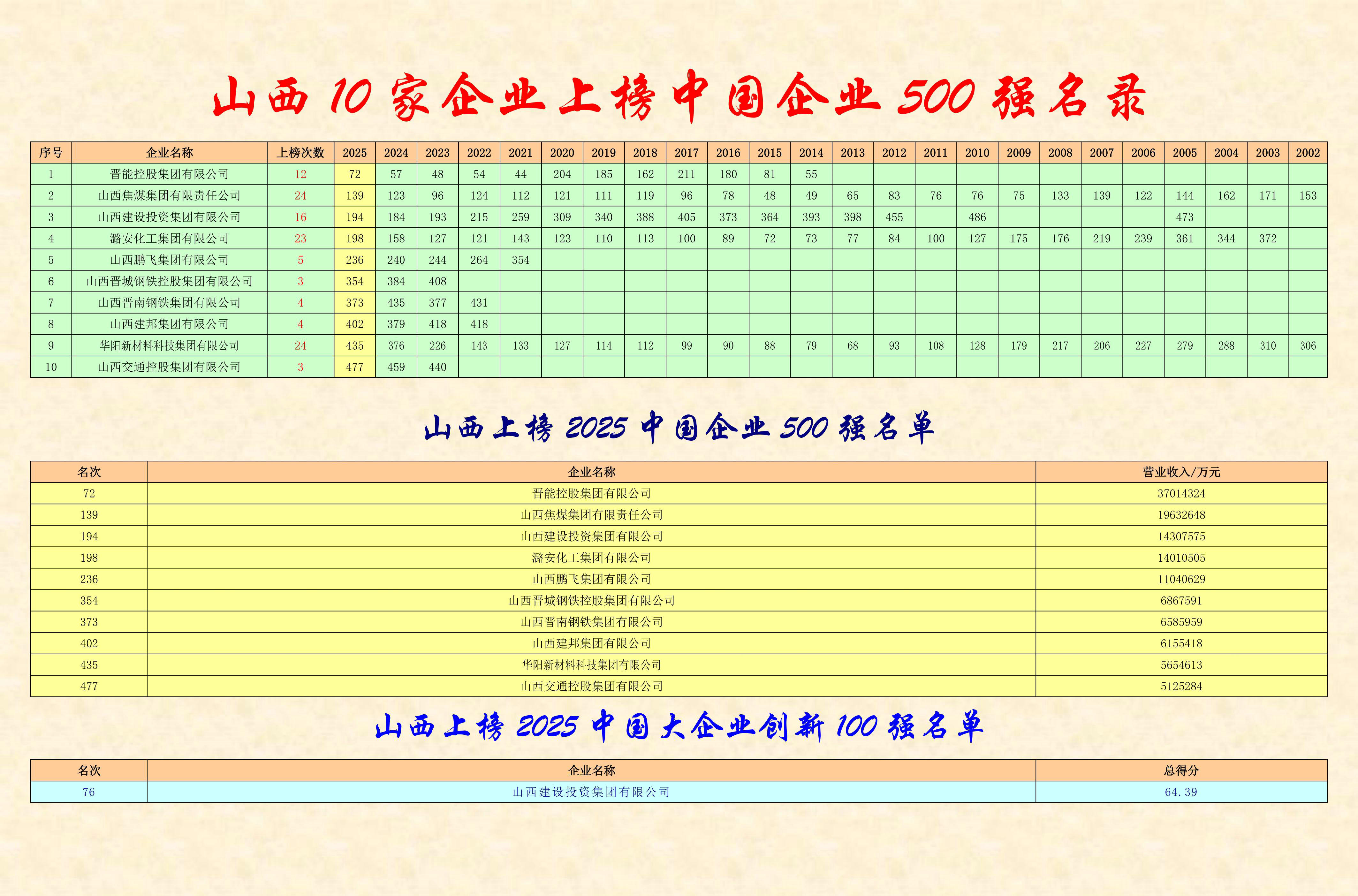 山西建投蝉联2025中国企业500强、大企业创新100强榜单