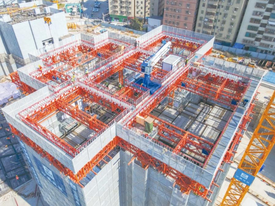 中建三局研发的住宅造楼机正在作业。夏仲斌摄