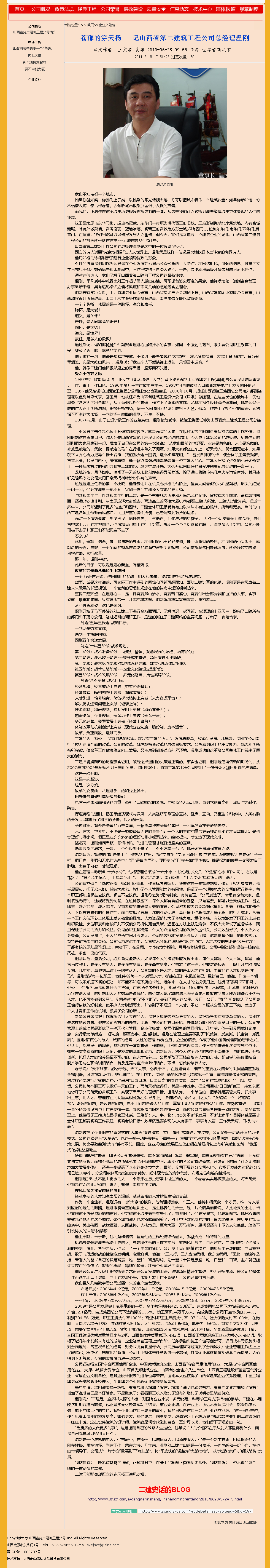 山西二建集团有限公司是我的母亲,我是她忠诚的儿子,永远陪伴老妈妈一生一世,永不分离!让她的胸怀和抱负释放,帮助更多的行业同仁得到成功的经验和机遇,这就是不折不扣执行母亲的愿望,把今年会推上发展的快车道,实现实业报国之心之志,为中华民族伟大复兴的中国梦早日实现奉献一个企业家的使命和担当!