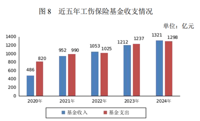 全年有 224 万人享受工伤保险待遇。全年工伤保险基金收入 1321 亿元,基金支出 1298 亿元,年末工伤保险基金累计结余 1439 亿元(含储备金 116 亿元)。