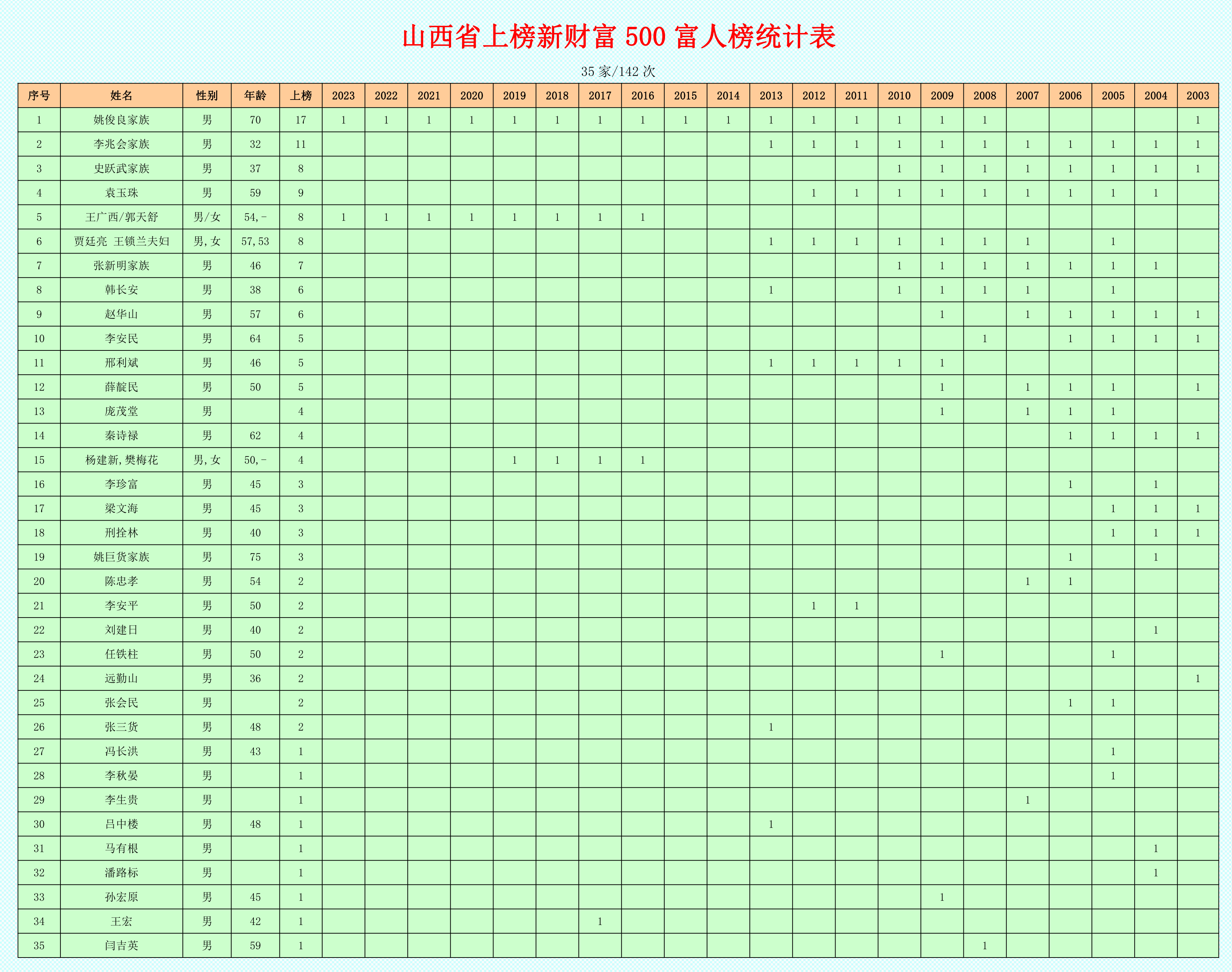 26 李兆会家族 男 22 2003 20.4 22 山西闻喜 海鑫集团 钢铁 22