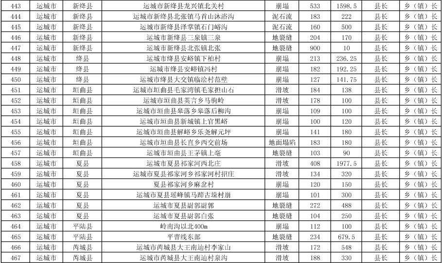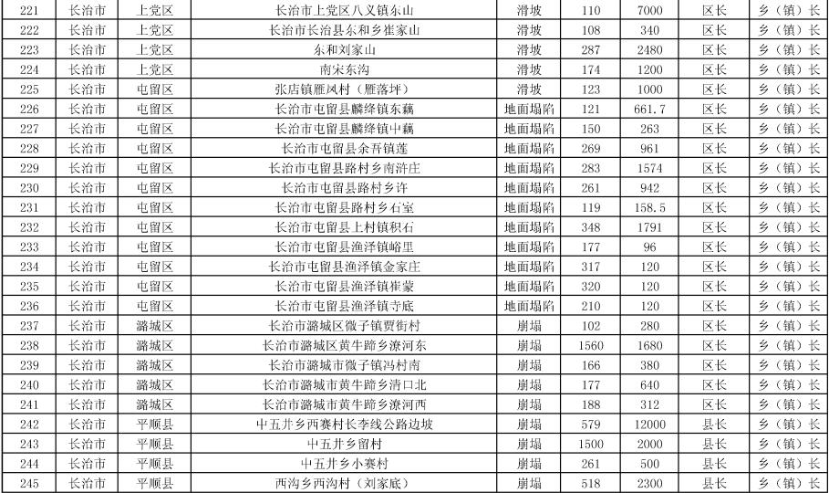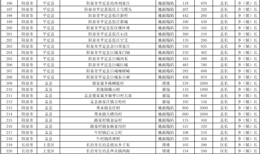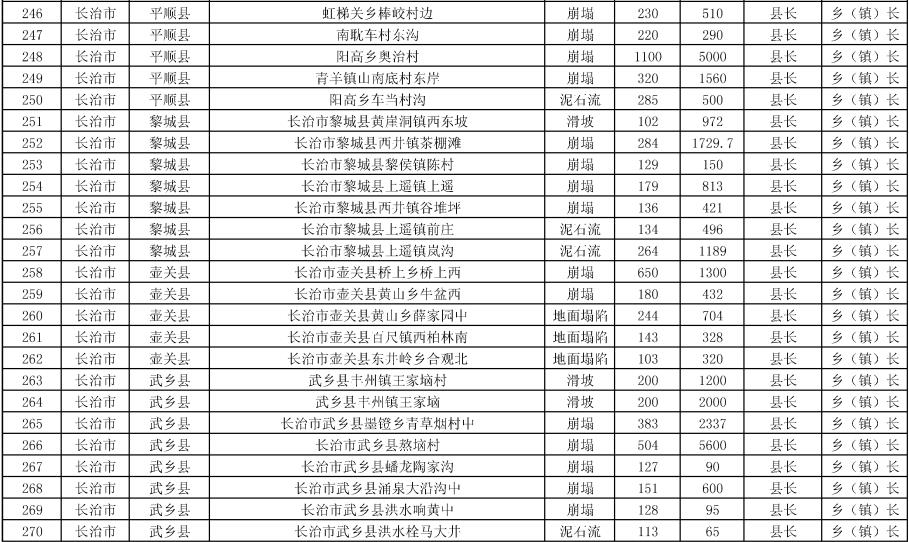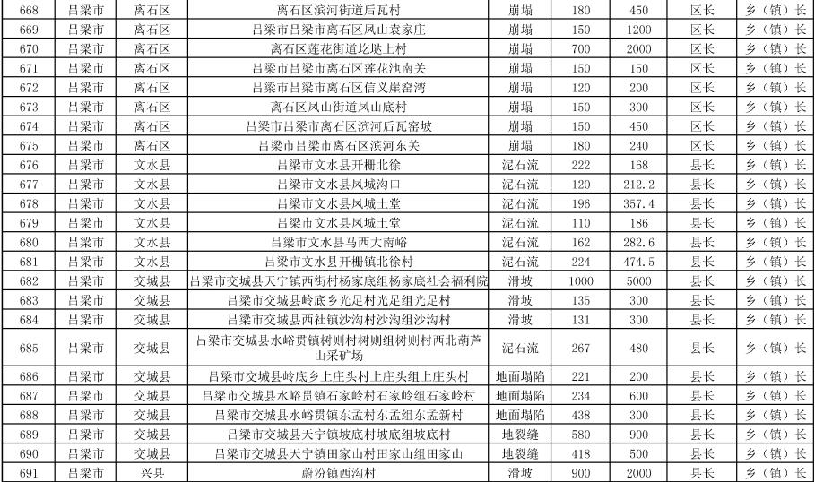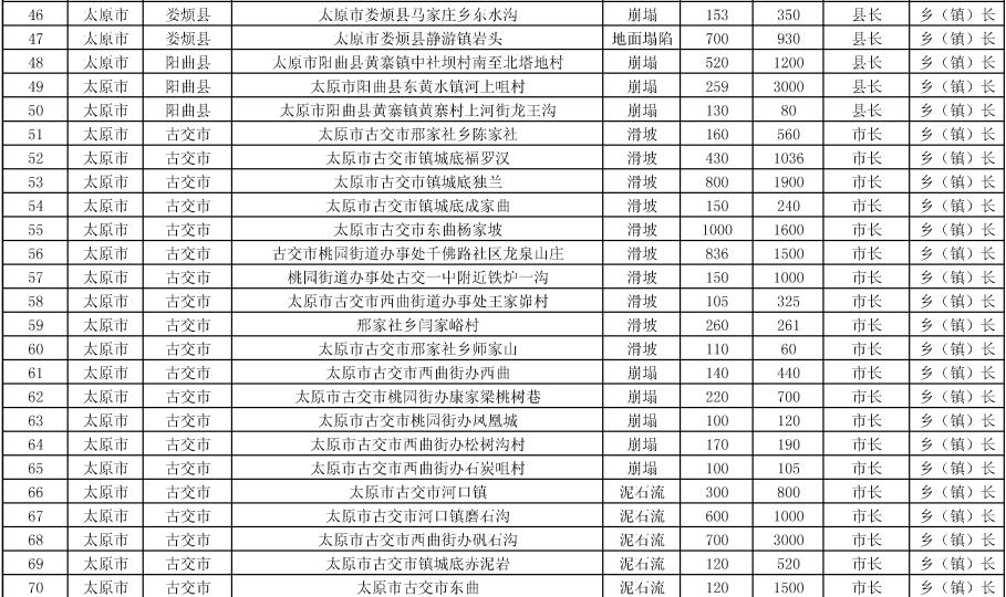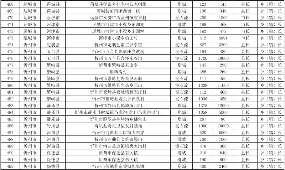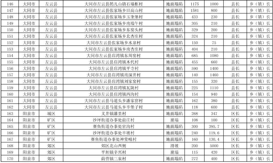 《方案》要求,强化治理搬迁,消除安全隐患。实施中央和省级资金安排9处地质灾害治理工程项目。其中,河津市、夏县、石楼县、临县、永和县、乡宁县、榆社县各1处,武乡县2处。《方案》提出,要把县级配套资金落实到位,加快项目施工进度,确保今年全部竣工;要推进中央和省级资金安排3397户农村地质灾害避险搬迁工作,落实市县配套资金,明确时间节点进度,确保年底全面开工,2024年竣工入住。