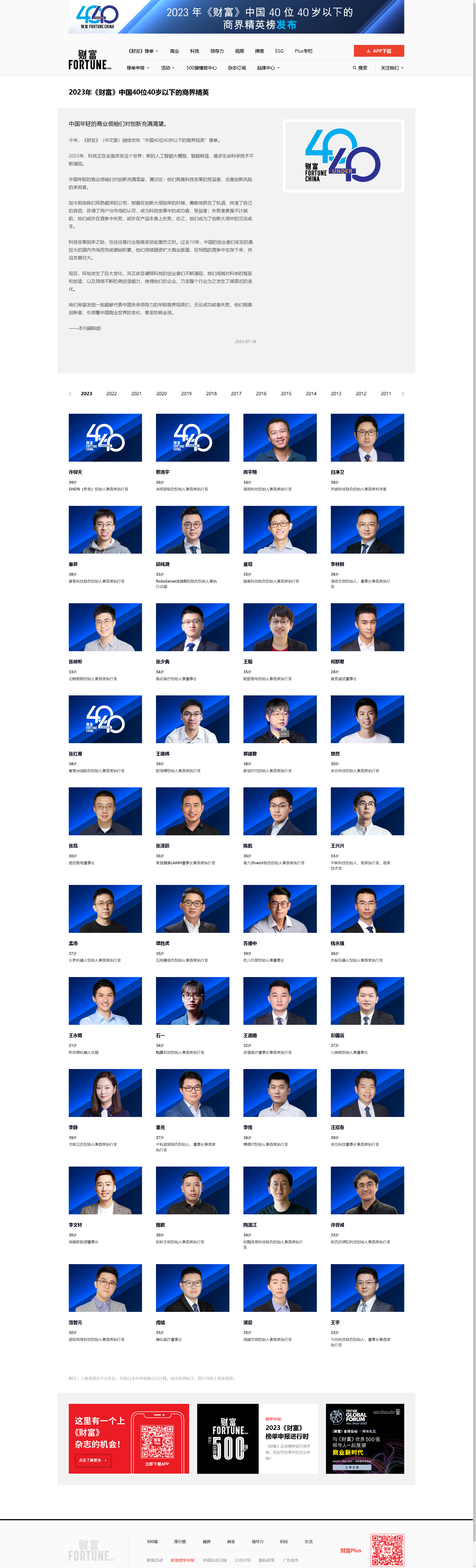 518 王宇 33岁 与光科技联合创始人、董事长兼首席执行官 2023 40