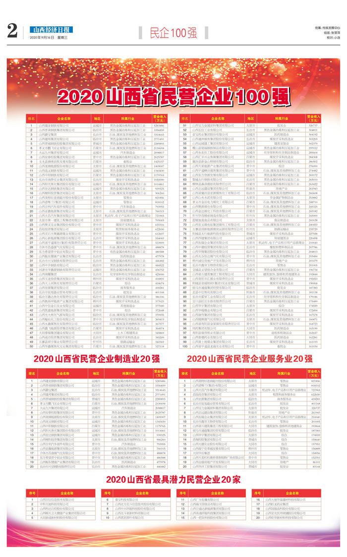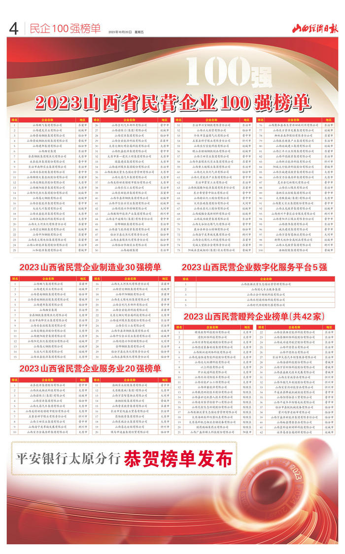 2023 山西省民营企业服务业 20 强榜单
