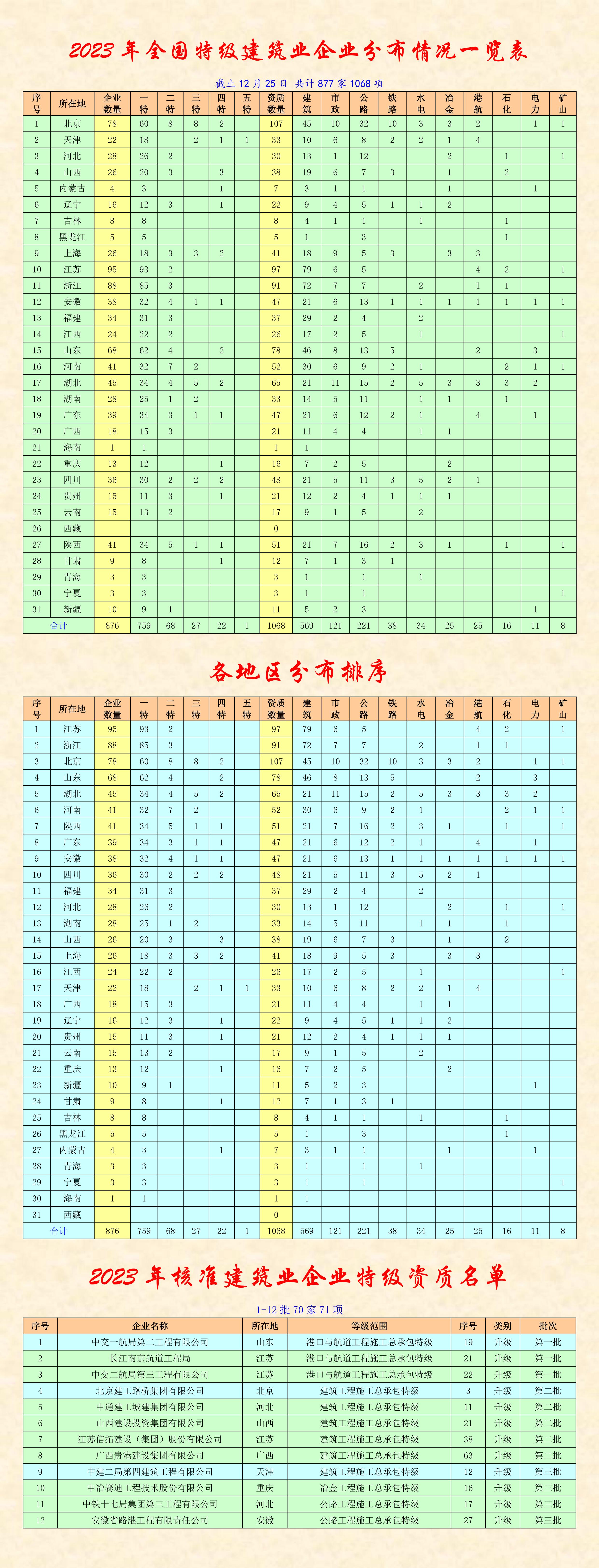 【学习园地】2023年四月份全国特级资质建筑业企业名单829家1019项