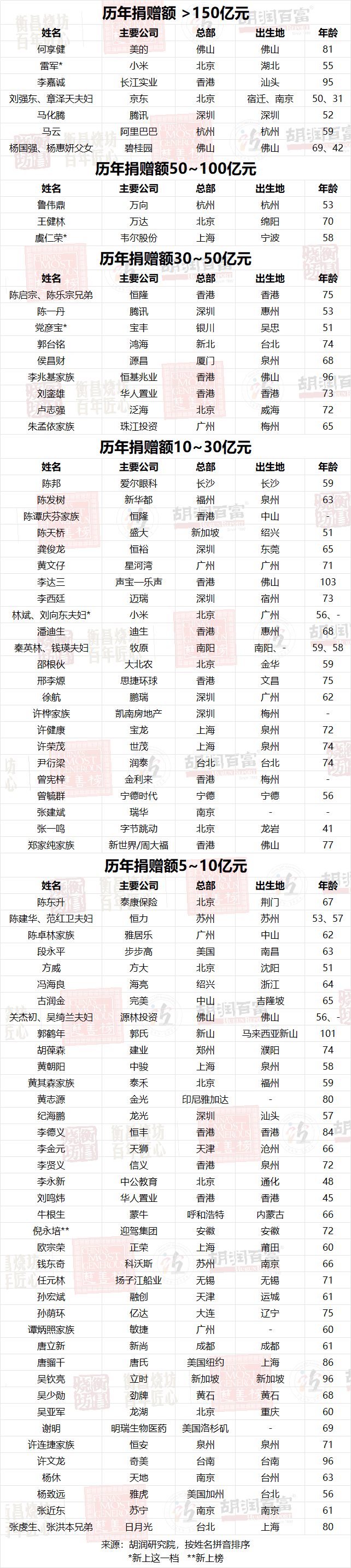 No13 ¥ 1 亿 洪肇设 教育、社会公益