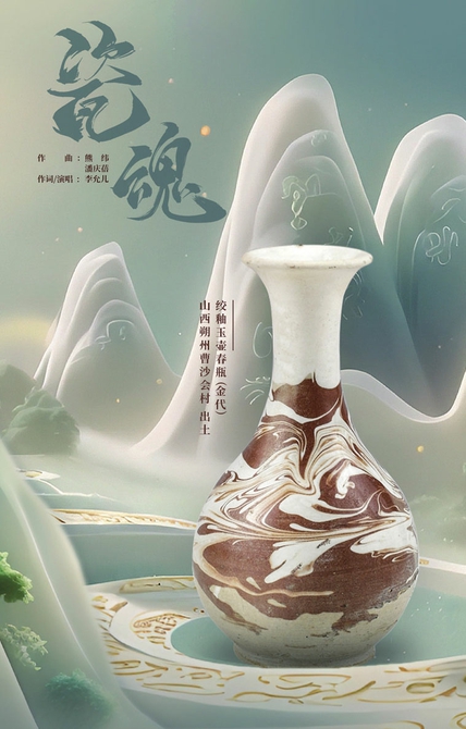 “山水近,苍黄分,你可见丹青华彩五色泥尘……”歌曲《瓷魂》一开头,便设置了一幅水墨画般的意境,山水和陶瓷被置于中国传统色彩的丹青之中。这里的“五色泥尘”暗喻陶土的多样性和陶瓷的丰富色泽。接下来的“陶烟熏,素心焚”,则形象地描述了制陶过程中的火候和心力,展现了陶瓷匠人对完美作品的追求和执着。“三千载,又一春,炼成了炎黄汗青寰宇写真”,是对中国陶瓷历史悠久和文化深厚的赞美,更是对勇于创新、与时俱进和生生不息的中华民族精神的颂扬。