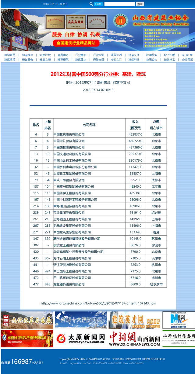 二十年前,第一次发现北方网世界500强专题报道这个栏目,激发起强烈的兴趣和爱好,由此一发而不可收。尤其是在建筑业协会搞网站,更是把关注重点放在分门别类的排行榜上,及时转载并且保存起来。