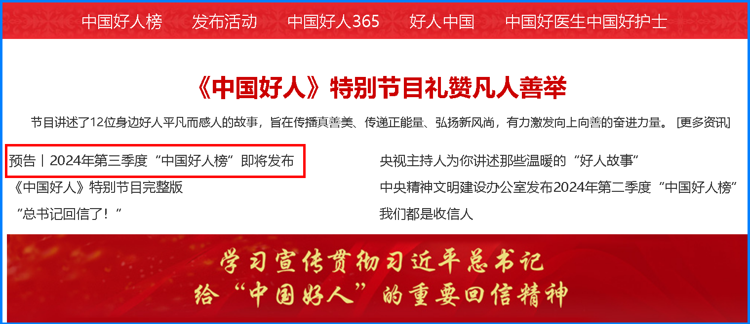 下午,感应到今天中央文明委要发布今年第三季度中国“好人榜”,打开文明网一看,果然是!