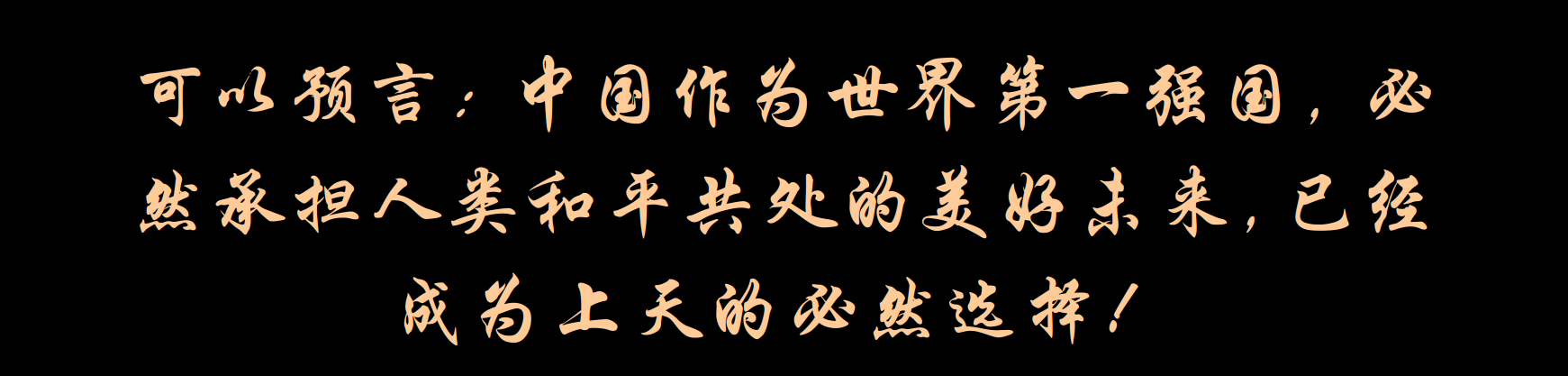 可以预言:中国作为世界第一强国,必然承担人类和平共处的美好未来,已经成为上天的必然选择!