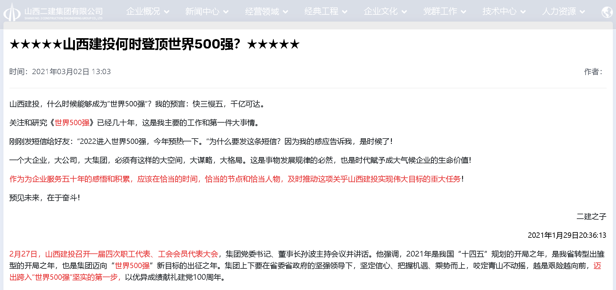 五年前,发给山西建投决策者的信息,正式拉开了进军《世界500强》世界级大体量重量级大公司的序幕,这是关系山西建筑业在二十一世纪全面振兴和山西未来经济社会发展的百年大计,也是老夫一辈子矢志不移的信念、信心和信仰!