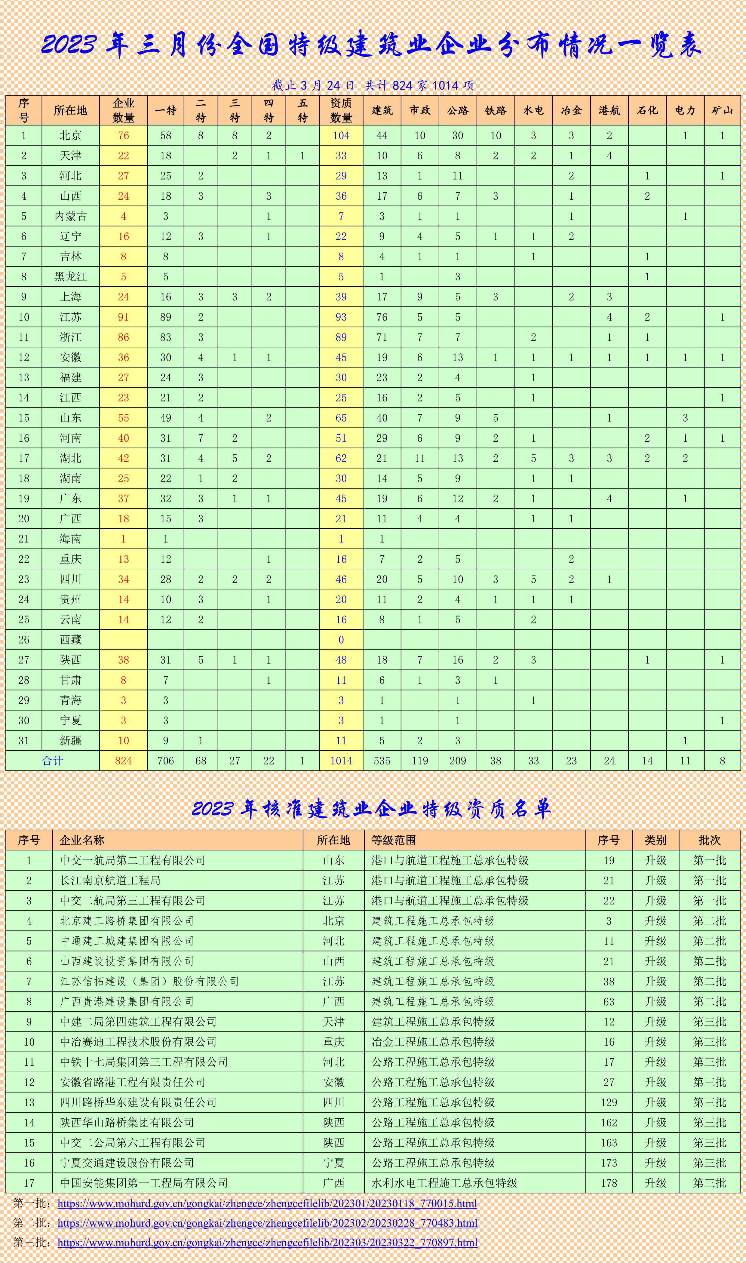 【学习园地】2023版全国特级资质建筑业企业名单(第三批)