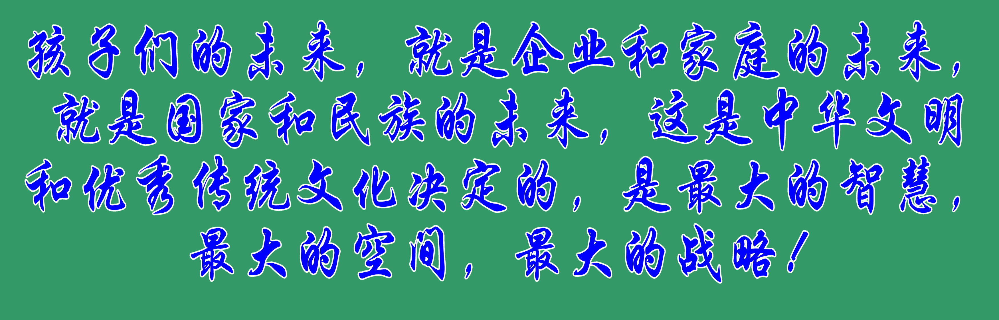 孩子们的未来,就是企业和家庭的未来,就是国家和民族的未来,这是中华文明和优秀传统文化决定的,是最大的智慧,最大的空间,最大的战略!