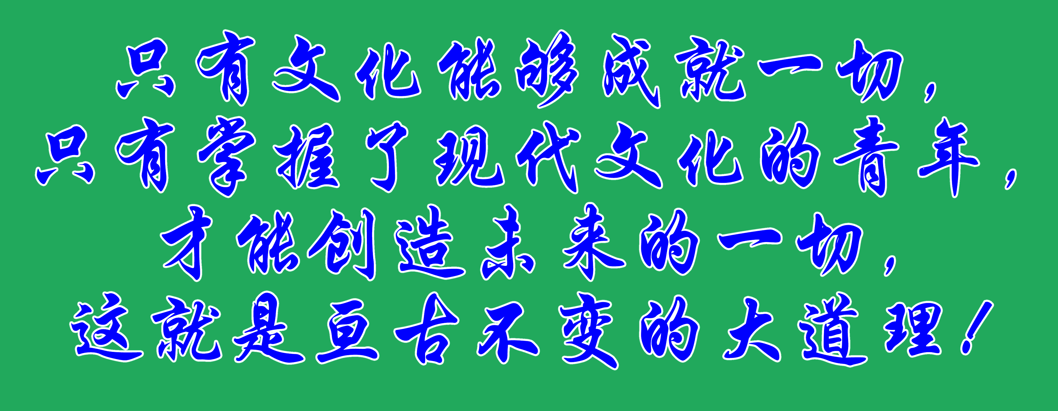 只有文化能够成就一切,只有掌握了现代文化的青年,才能创造未来的一切,这就是亘古不变的大道理!