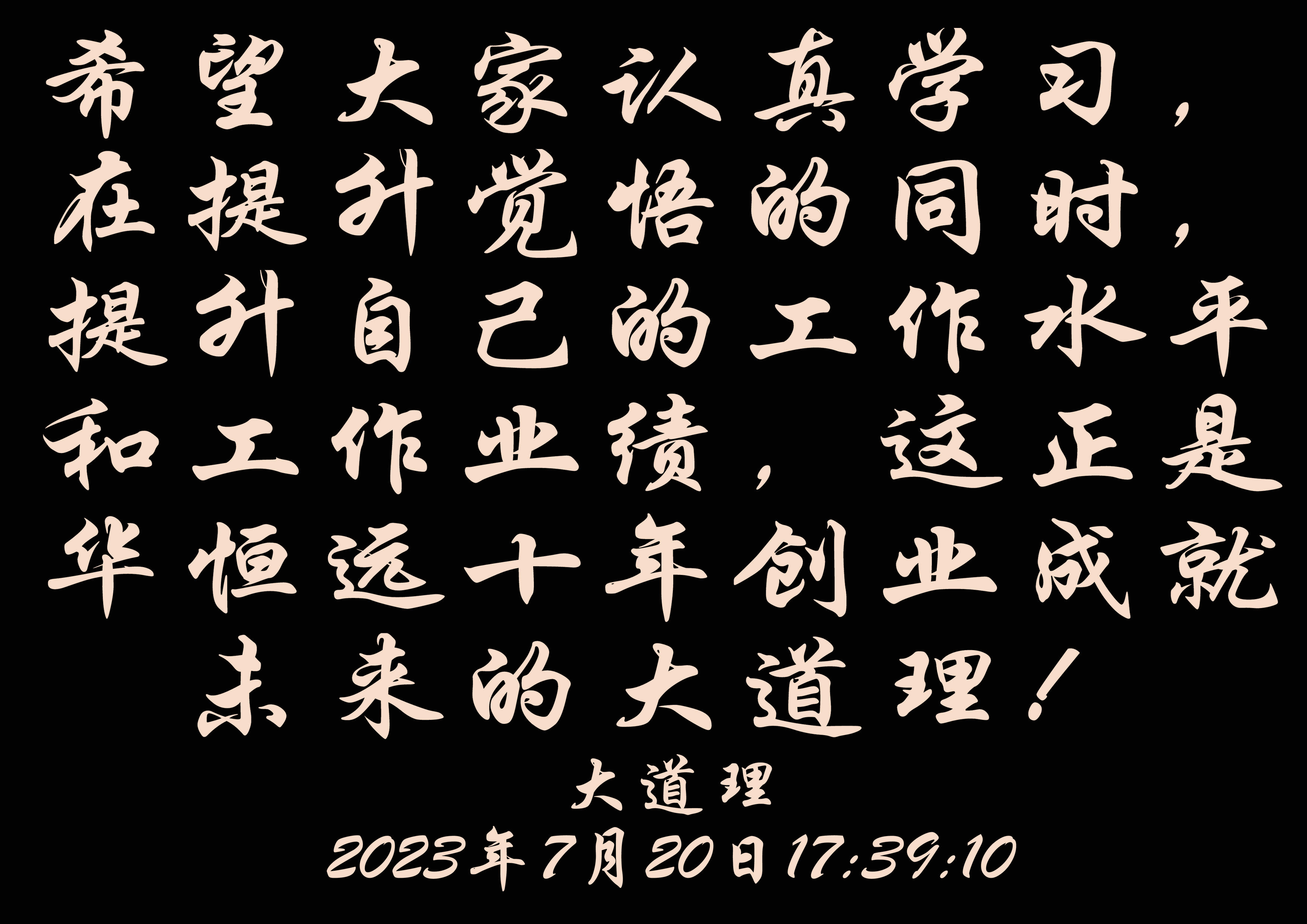 希望大家认真学习,在提升觉悟的同时,提升自己的工作水平和工作业绩,这正是今年会十年创业成就未来的大道理!