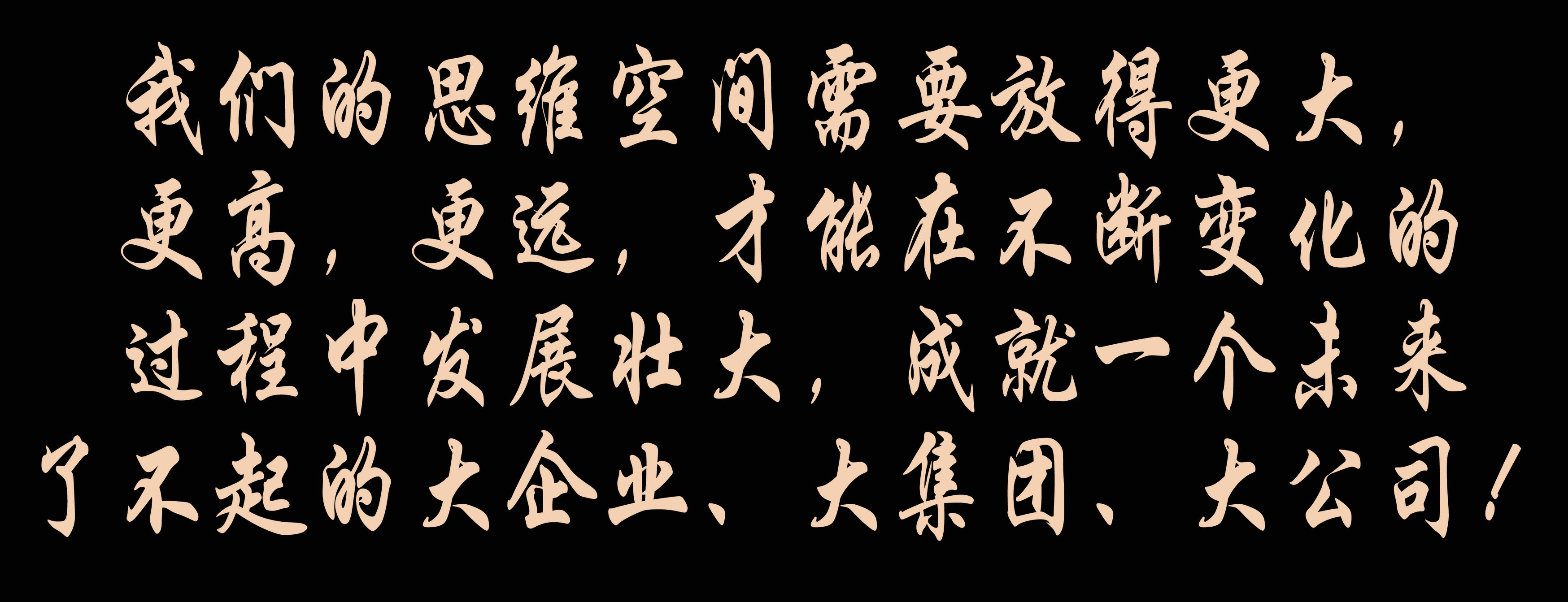 因此,我们的思维空间需要放得更大,更高,更远,才能在不断变化的过程中发展壮大,成就一个未来了不起的大企业、大集团、大公司!