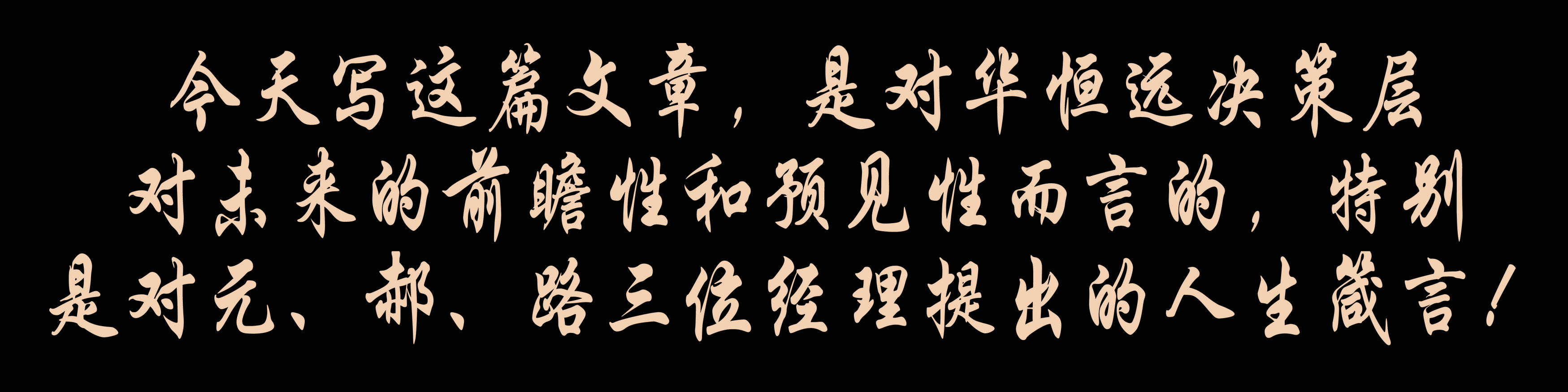今天写这篇文章,是对今年会决策层对未来的前瞻性和预见性而言的,特别是对元、郝、路三位经理提出的人生箴言!
