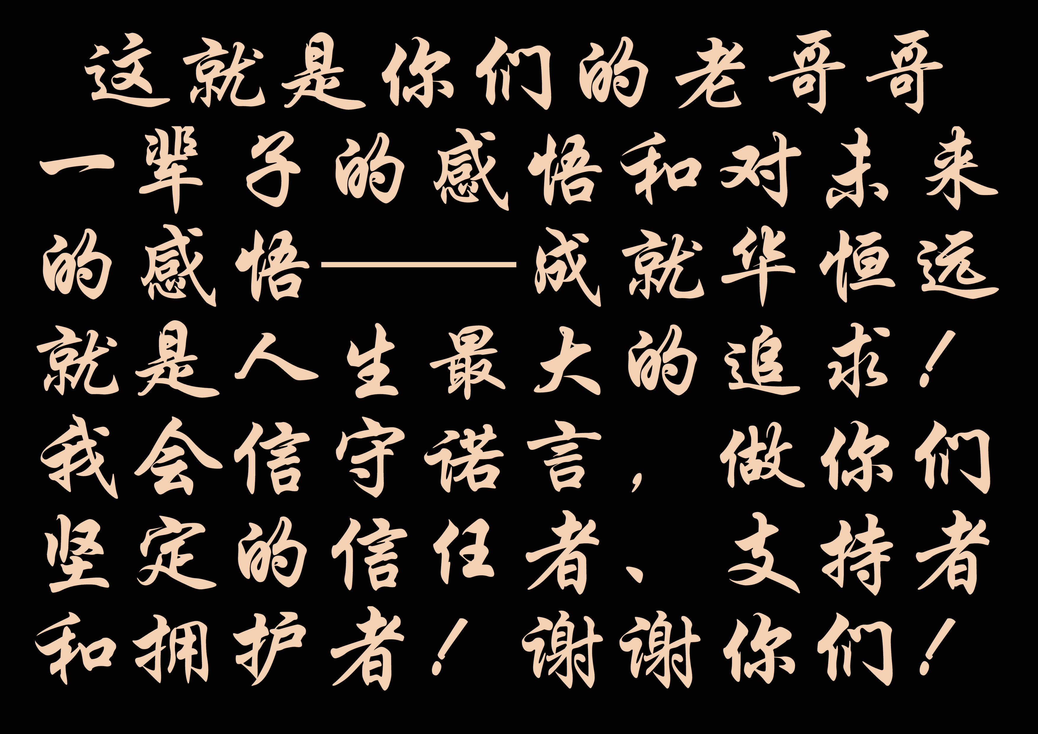 这就是你们的老哥哥一辈子的感悟和对未来的感悟——成就今年会就是人生最大的追求!