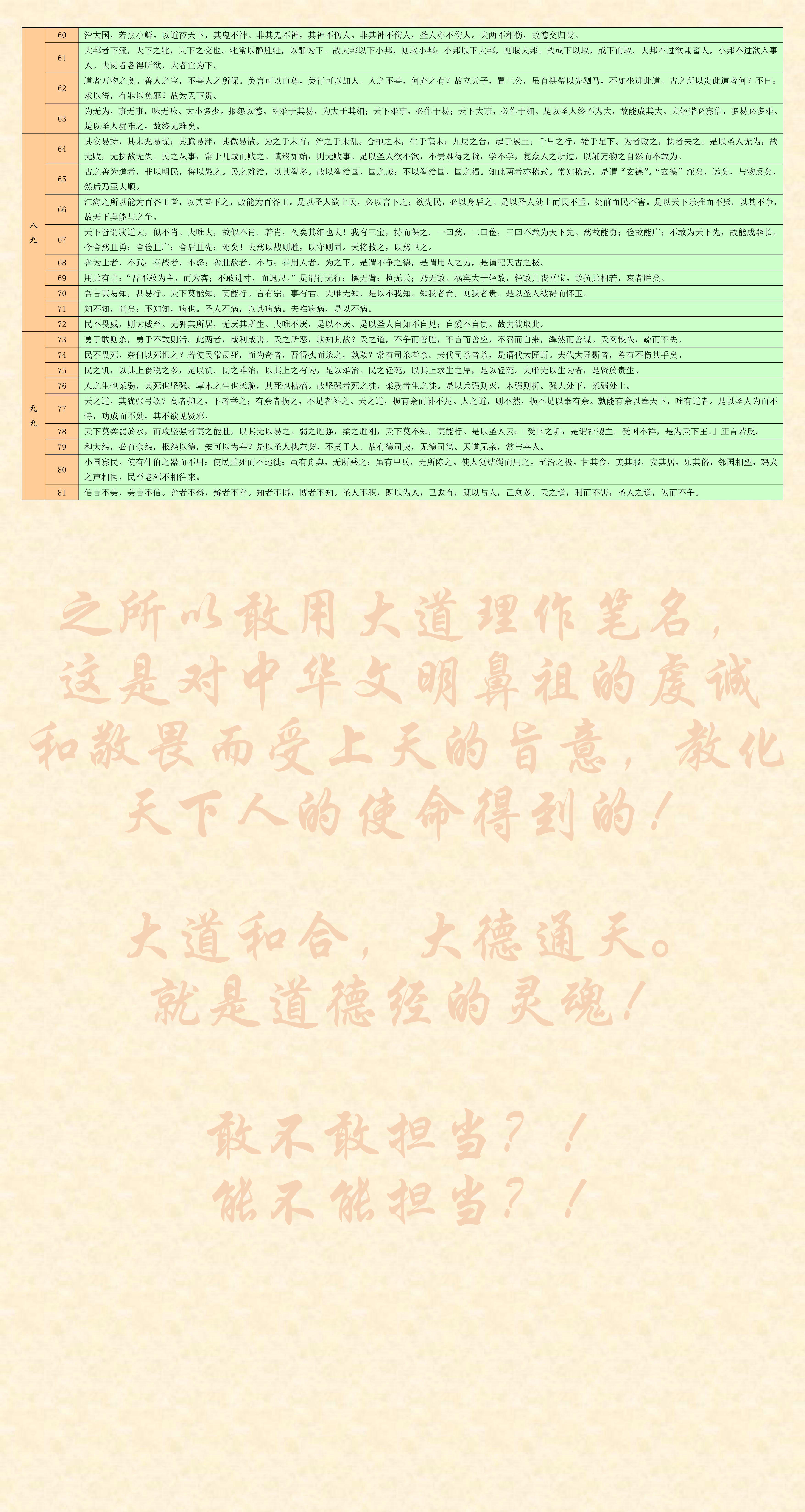 为什么我要用表格的形式编辑《道德经》呢?就是告诉你中华文明和中华文化最高境界什么是大道理!