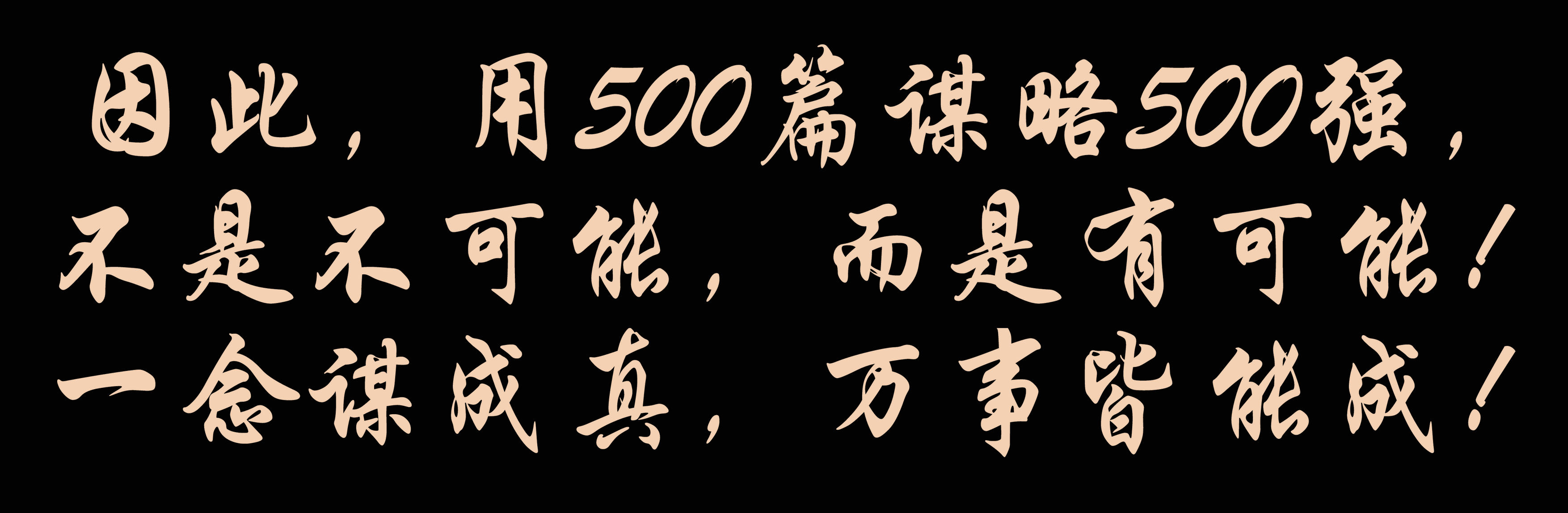 因此,用500篇谋略500强,不是不可能,而是有可能!一念谋成真,万事皆能成!
