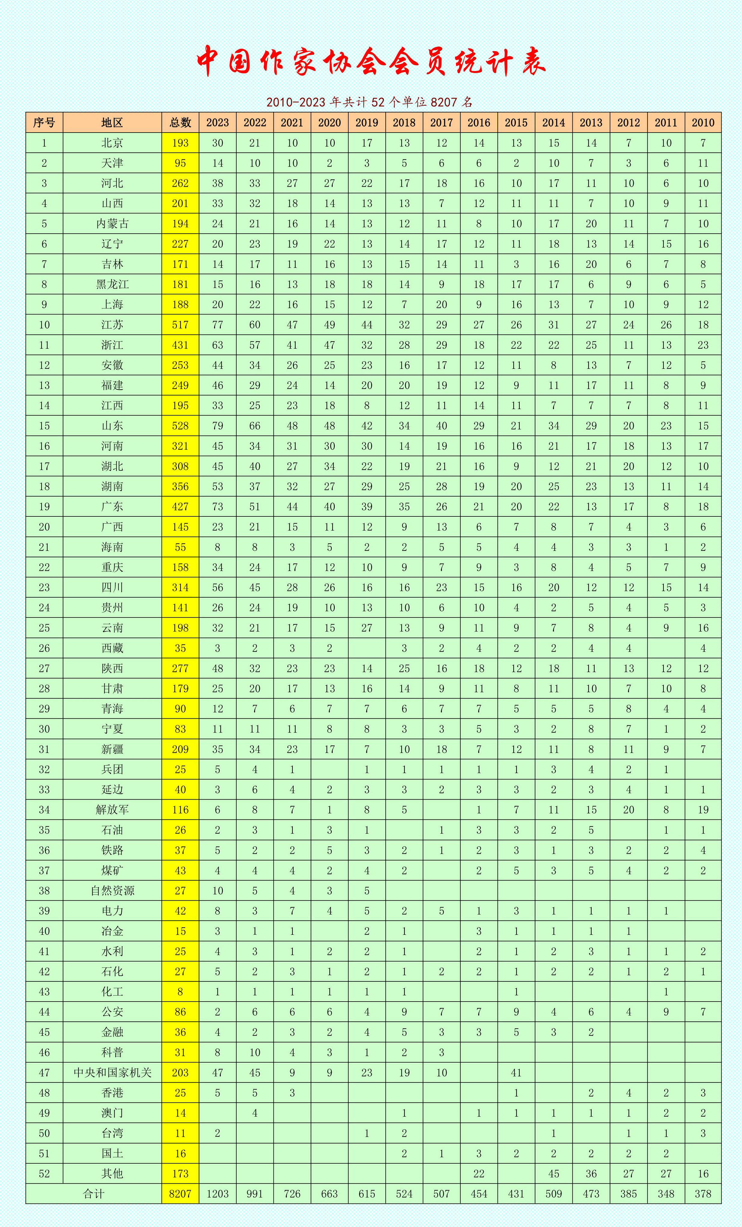 许卫国 2013许文舟 2014许小鸣(女) 2010许晓雯(女) 2019许心龙 2023许烟华 2012许艳文(女) 2015许燕妮(女) 2023许燕影(女) 2014许养文 2022许迎坡 2013许云倩(女) 2014许泽夫 2012许泽平 2021许长青(许王凡生,女) 2017许振民 2014许震 2012许正敏 2011许中华 2022许仲(许栩如生) 2017许紫琦(铁扇公子,女) 2019续小强 2018轩辕轼轲 2014玄青花(女,朝鲜族) 2022薛宝民 2018薛保勤 2014薛东林(末未) 2016薛广玲(女) 2021薛红娟(梧桐细雨,女) 2017薛景川 2021薛俊明 2012薛林荣 2014薛梅(女,满族) 2016薛年勤 2018薛庆国 2019薛荣 2014薛锡祥 2010薛喜君(女) 2014薛晓燕(女) 2013薛秀霞(薛依依,女) 2023雪赫来提?穆罕默德(维吾尔族) 2012牙韩彰(壮族) 2021牙里坤?肉孜(维吾尔族) 2012牙生?赛依提(维吾尔族) 2020崖丽娟(涓涓,女,壮族) 2023雅森?孜拉力(维吾尔族) 2012亚库甫?司马义(维吾尔族) 2022鄢萍(一笔,女) 2017闫殿才 2021闫刚 2014闫桂花(女) 2016闫海军 2018闫红(女) 2011闫红(女) 2023闫宏伟 2010闫俊玲(女) 2018闫立飞 2022闫立秀 2013闫美娜(闫语,女) 2019闫平 2023闫琼(女) 2022闫荣霞(凉月满天,女) 2012闫善华(女,满族) 2021闫伟东 2022闫卫星 2022闫文盛 2011闫小杰 2022闫秀娟(女) 2012闫岩(女) 2022闫艳(女) 2023闫义(阎逸) 2017严蓓雯(女) 2020严碧华 2023严彬 2020严岛影 2021严风华(壮族) 2010严建平 2011严敬 2014严立群 2010严利(女) 2016严龙宁 2014严明(张岩) 2023严萍(女) 2023严诗喆(女) 2015严双军 2010严晓萍(女) 2023严新(极品妖孽) 2017严学章 2019严英秀(女,藏族) 2010严泽 2017严正冬 2014严志明 2014严子涵(言言夫卡,女) 2022阎世德 2021阎文水 2022阎小鹏 2023颜慧(女) 2013颜梅玖(女) 2012颜巧霞(女) 2020颜全毅 2022颜士富 2021颜水生 2017颜廷君 2019颜廷奎 2015颜同林 2019颜妍(女) 2023颜燕华(燕华君,女) 2010颜永江(苗族) 2018晏翠萍(女) 2022晏建怀 2014晏杰雄 2014晏武芳(晏子非,土家族) 2021燕杰 2020燕霄飞 2018燕燕燕(女) 2023羊亭 2020阳剑 2015杨艾琳(杨知寒,女,回族) 2018杨本芬(女) 2023杨碧薇(女) 2019杨碧颖(潇湘碧影,女,苗族) 2020杨彬(女,土家族) 2018杨斌华 2012杨斌凯 2018杨冰泉 2022杨波 2013杨伯良 2012杨博 2017杨常军 2018杨晨 2022杨川庆 2014杨春(女) 2021杨春风(女) 2020杨春风(沙与沫,女) 2015杨春光 2012杨春梅(女) 2021杨村 2013杨村(苗族) 2018杨达寿 2013杨代军 2022杨道(看麦娘,女) 2016杨殿梁 2023杨东彪 2014杨东杰 2021杨冬玲(杨点墨,女) 2021杨渡 2022杨恩智 2018杨发运 2016杨帆(女) 2010杨帆(女) 2019杨方(三棵树,女) 2011杨方毅(杨不易) 2023杨芳兰(女,侗族) 2021杨丰美(女) 2021杨风军 2019杨凤喜 2011杨福泉(纳西族) 2019杨府 2023杨富国 2015杨刚良 2014杨广虎(长安虎) 2017杨贵锋(回族) 2019杨贵福 2022杨国庆(羊子,羌族) 2011杨海霞(那海,女) 2022杨汉亮(横扫天涯) 2018杨浩(三戒大师) 2016杨红光 2022杨宏(满族) 2016杨洪军 2013杨胡平 2020杨虎 2016杨华之 2019杨辉 2022杨辉素(女) 2019杨荟(女,彝族) 2019杨继光(紫新) 2016杨继渊(彝族) 2023杨家彬 2019杨家强(满族) 2018杨家荣(杨杨) 2019杨稼生(回族) 2021杨建虎 2012杨建军(回族) 2017杨建仁 2013杨建茹(杨剑茹) 2016杨建业 2013杨杰(小语) 2016杨洁波(夜森,女) 2020杨金辉 2023杨金砖 2020杨进 2010杨劲松 2023杨景荣 2014杨菊梅(黍不语,女) 2021杨军 2020杨军(女,彝族) 2023杨军民 2021杨俊伟(傈僳族) 2023杨俊文(满族) 2013杨浚荣 2010杨开显 2019杨凯(抽烟的咖啡) 2022杨康 2014杨克宁(宁克多杰,藏族) 2022杨矿 2013杨来江(杨逍) 2016杨浪 2011杨犁民(苗族) 2016杨黎明(静明) 2016杨立华 2021杨立秋 2020杨立新 2021杨立新(穆易) 2016杨丽(杨骊,女) 2022杨丽娟(女) 2015杨丽萍(女) 2018杨利景 2012杨莉(女,白族) 2016杨莉(碎碎,女) 2019杨莉(长安微暖,女,土家族) 2021杨林 2022杨林静(女) 2020杨灵芝(林夕,女) 2023杨玲(女,苗族) 2023杨凌艳(晏凌羊,女) 2018杨璐临(女) 2023杨罗先 2018杨马林 2013杨茂栋(苍城子) 2015杨梅莹(女) 2021杨美宇(女,回族) 2020杨孟冬 2023杨宓 2022杨绵发 2020杨明 2016杨明山 2014杨明沿 2021杨牧原 2017杨南(8难) 2018杨年华(白族) 2013杨宁(侗族) 2013杨培德(满族) 2013杨丕梁 2022杨平 2023杨平 2021杨平 2020杨萍(女) 2014杨璞(女) 2022杨奇 2019杨启友 2022杨巧(女) 2022杨琴(秦小羊,女) 2023杨勤良 2019杨清茨(女) 2021杨清汀 2019杨庆荣(杨静南) 2020杨庆祥 2013杨庆祥 2013杨全喜(杨遥) 2010杨群芳(艾玛,女) 2011杨荣昌 2016杨汝祥(杨十八) 2020杨蕊(清灵梦,女) 2023杨莎妮(女,回族) 2019杨少波(杜鹃堂主) 2017杨生博 2021杨胜应(苗族) 2021杨胜章(章郎雪玉,苗族) 2023杨士兰(女) 2022杨世春 2022杨仕芳(侗族) 2014杨淑美(女) 2018杨曙明 2014杨树军 2023杨树林 2023杨四海 2021杨天赋 2015杨天庆 2020杨天祥 2015杨铁军 2023杨廷成 2013杨庭安(左岸) 2020杨庭轶(沐轶,侗族) 2020杨万勇(牛凳) 2020杨维周(西可) 2012杨伟(羊白) 2023杨卫东(满族) 2011杨蔚然(蔚然成锋) 2016杨文辉 2019杨文升(苗族) 2021杨曦(板栗子,女) 2021杨袭(女) 2016杨先 2019杨献平 2010杨晓光 2011杨晓华(杨树) 2011杨晓澜(苗族) 2019杨晓林(女) 2020杨晓颖(旖旎萌妃,女,蒙古族) 2023杨筱艳(女,回族) 2019杨秀刚(侗族) 2020杨秀玲(林秀,女) 2017杨秀庭(杨秀廷,苗族) 2022杨秀珍(女) 2014杨宣强 2010杨学锋(回族) 2013杨学文 2010杨学英(泽英,女) 2017杨雪松(女) 2022杨雅(杨不寒) 2023杨亚丽(杨枥,女) 2022杨亚玲(沧溟水,女,土家族) 2020杨衍瑶(仫佬族) 2017杨艳(舞清影521,女) 2018杨艳辉(女) 2023杨洋(安小橙,女) 2019杨叶飞(风丫头,女) 2014杨一枫(蒙古族) 2018