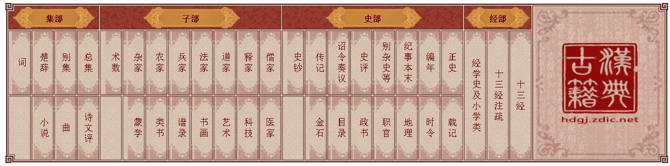 史部         子部         集部         诗部         儒部         易部         艺部         医部         丛部         佛部         道部