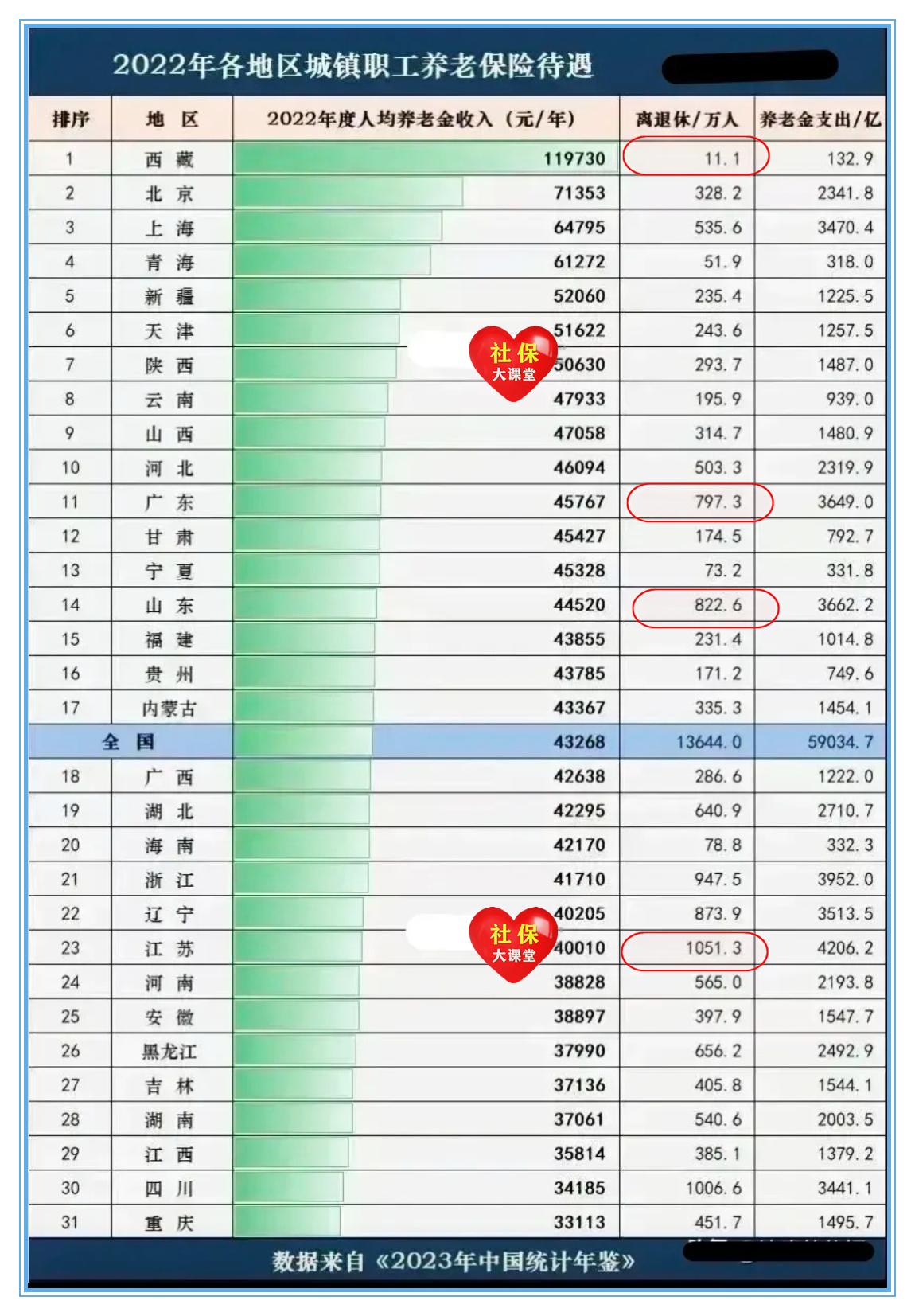 2024各地区退休人员养老金定额调整排序